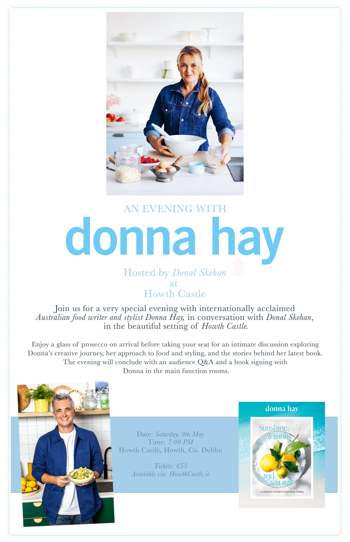 Join us for a very special evening with internationally renowned Australian food writer and stylist Donna Hay, in conversation with food writer & TV host Donal Skehan, in the beautiful surroundings of Howth Castle.